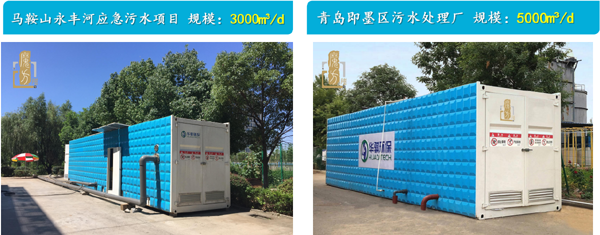 魔方舟产品。适用于村镇集中处理,通过不同组合,可满足15—2000吨/日的处理需求,采用A³/O泥膜耦合脱氮除磷工艺,出水达到一级A排放标准,这套设备有两大特点:一是微生物量大,活性强,耐冲击负荷强,所以处理效果稳定;二是通过对设备的不断优化,设备故障点降到最低,从而保障了设备长期稳定运行,实现无人值守。另外,设备独特的保温设计,可满足寒冷地区运行。目前已成功应用与大量工程应用中,出水均稳定达到排放标准要求。