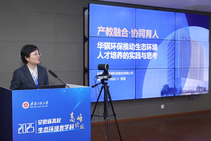 11月14日-15日,由安徽省普通本科高校环境类专业合作委员会主办、安徽工程大学承办、安徽华骐环保科技股份有限公司参与协办的2025年安徽省高校生态环境类学科高峰论坛暨2025 年“华骐-蓝必盛杯”安徽省大学生生态环境创新创业大赛决赛成功举办。同济大学徐祖信院士、中国科学技术大学俞汉青院士分别在线上及现场作了主题报告。华骐环保副总裁程晓玲代表公司出席活动。