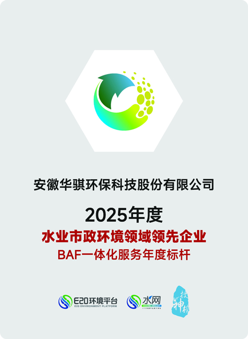 近日,在E20环境平台主办的“2026(第二十四届)水业战略论坛”上,2025年度(第二十三届)水业细分领域获奖企业榜单隆重揭晓。安徽华骐环保科技股份有限公司凭借其在BAF一体化服务领域的卓越表现,荣获“2025年度水业市政环境领域领先企业-BAF一体化服务年度标杆”称号。